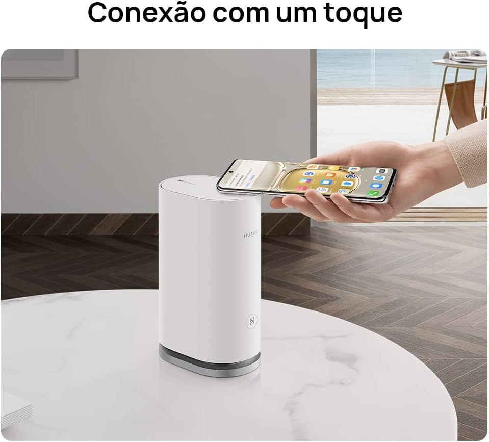 【Conexão com um Toque】-Basta tocar seu telefone na área de detecção de NFC do HUAWEI WiFi Mesh 3 para uma conexão Wi-Fi imediata. Não é necessário inserir o nome ou senha da rede Wi-Fi.