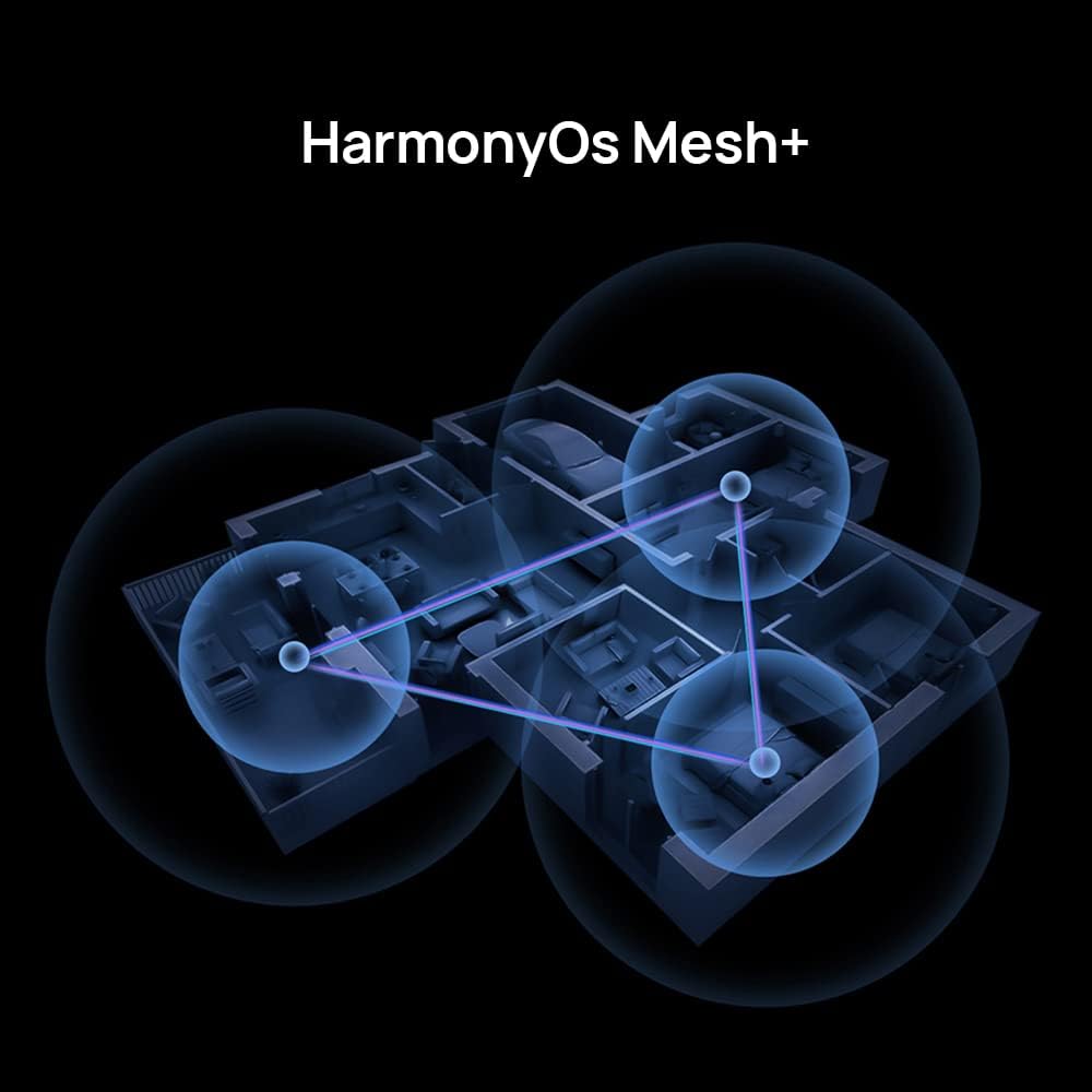 【HarmonyOS Mesh+, Excelente Desempenho de Rede】-O HarmonyOS Mesh+ mantém seus dispositivos conectados com o excelente sinal Wi-Fi para que você possa desfrutar sempre de uma rede estável e de alta velocidade enquanto se move livremente pela sua casa.